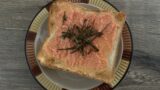 - 輪切りにしたバナナと砕いたくるみを食パンに乗せる